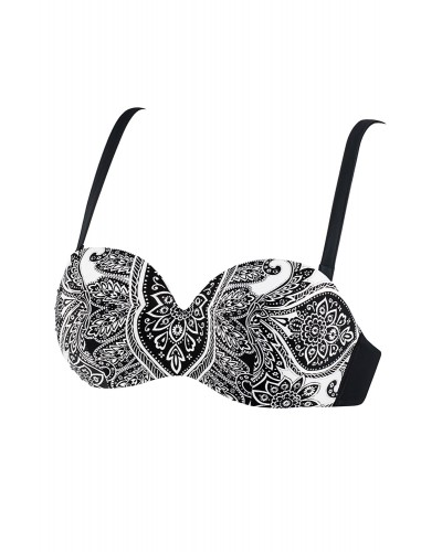 Бюстгальтер-балконет из коллекции Simply Elegant с формованными чашками с контрастным цветочным узором на черном однотоне. Бретели регулируются по длине и отстегиваются, на спинке застежка. Сочетайте с любыми плавками этой же коллекции для создания яркого пляжного образа.