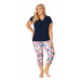 Пижама Mila темно-синего цвета c короткими рукавами и укороченными брюками. Вырез на футболке декорирован крупным кружевом. Изделие выполнено из мягкой гладкой вискозы и упаковано в красивую плотную коробку.