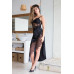 Женская сорочка выполнена из кружевного полотна в сочетании с шелком. Модель полуприталенного силуэта длиной макси. Диагональный крой комбинирован кружевным полотном и полосками шелка-сатина. Лиф на тонких регулируемых бретельках украшен кружевом.