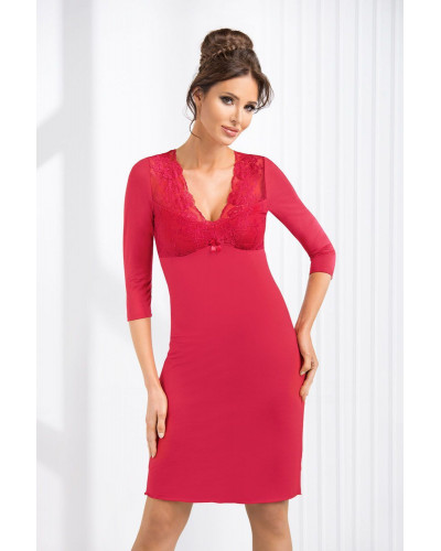 Cорочка Simone II красного цвета с рукавом 3/4, выполнена из мягкой гладкой вискозы. Верх сорочки декорирован эффектным кружевом. Сорочка упакована в красивую плотную коробку.