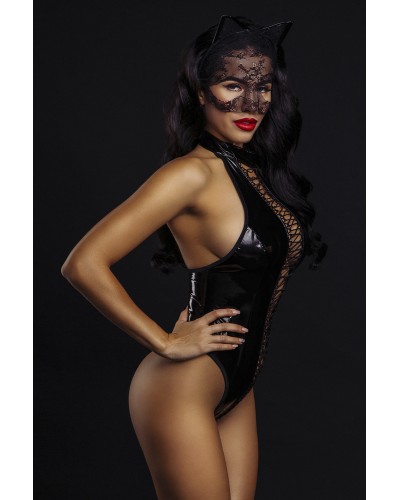 Кошечка – пикантный и независимый образ, который отлично передаст мужчине ваше игривое настроение. В ролевых играх это милое существо может быть как нежным и покладистым зверьком, так страстным и агрессивным хищником. Сексуальный костюм Кошечка выполнен в чёрном цвете и состоит из соблазнительного лакового боди на шнуровке и маски с ушками. В роли чёрной кошки вы реализуете самые смелые фантазии. Костюм упакован в потрясающую подарочную упаковку, с игривым перышком внутри.
