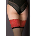 Чулки черного цвета Victoria с красной ажурной резинкой на силиконе и черной полосой под ней.