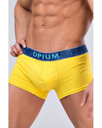 Короткие, облегающие мужскую фигуру шорты-боксеры из хлопка с эластаном – популярная модель среди молодежи. Плотная резинка джинсового цвета с логотипом Opium придает образу динамичности и современности.