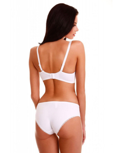 Трусики-слип средней посадки, комбинированы эластичным жаккардовым атласом и плотным трикотажем. Соединительные швы украшены изящным кружевом в тон ткани. Ластовица 100 % хлопок.